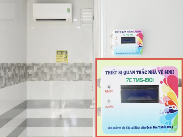 Thiết bị quan trắc môi trường do chính bệnh viện sản xuất và được lắp đặt tại các nhà vệ sinh của bệnh viện