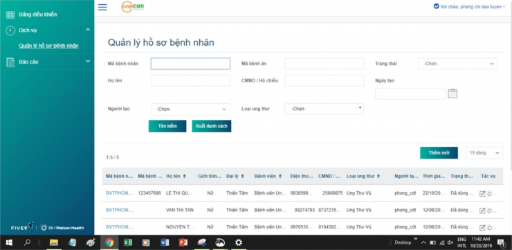 Dưới đây là một số hình ảnh về trình tự các bước thực hiện khi sử dụng phần mềm “IBM Watson for Oncology” tại BV Ung Bướu: