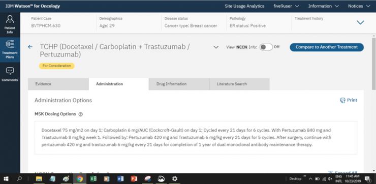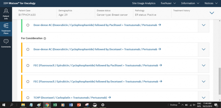 Sau gần 2 năm chính thức triển khai thử nghiệm phần mềm này trên 103 bệnh nhân ung thư vú và 126 bệnh nhân ung thư đại trực tràng, các bác sĩ của BV Ung Bướu đánh giá tỷ lệ tương đồng giữa phác đồ điều trị của bệnh viện hiện nay và phác đồ của phần mềm đưa ra là 80,3%; trong đó tương đồng về phác đồ điều trị ung thư vú là 71%, ung thư đại trực tràng là 88,1%.
