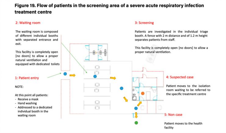 Sơ đồ thiết kế khu vực sàng lọc người bị nhiễm COVID-19, người có dấu hiệu viêm hô hấp nặng (SARI)