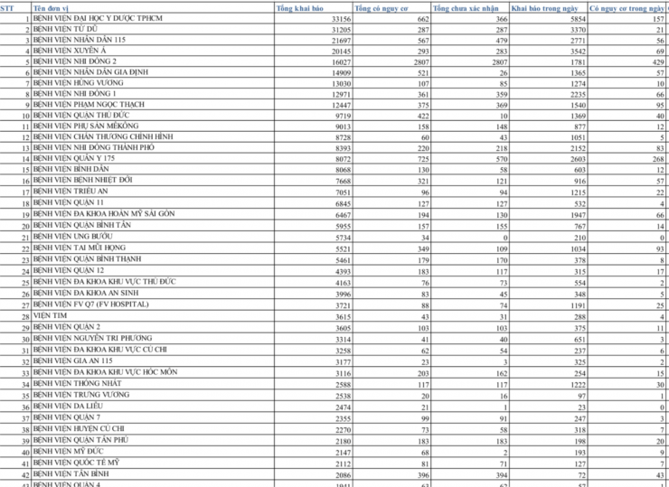 Đến nay, đã có 129 bệnh viện công lập và tư nhân trên địa bàn thành phố sử dụng ứng dụng khai báo y tế điện tử của Sở Y tế. Ngoài việc tạo tiện ích cho người dân khai báo khi đến khám bệnh tại các bệnh viện, ứng dụng khai báo y tế điện tử đã phát huy tác dụng khi HCDC liên tục cập nhật yếu tố dịch tễ trên phiếu khai báo, cập nhật này đáp ứng yêu cầu tình hình dịch tễ mới khi truy vết tiếp xúc (F1, F2) đang diễn ra trên địa bàn thành phố. Điều này hoàn toàn không thực hiện được nếu theo cách khai báo thủ công trên giấy như trước đây, và chắc chắn sẽ ảnh hưởng không nhỏ đến chất lượng hoạt động phân luồng và khám sàng lọc tại các bệnh viện.