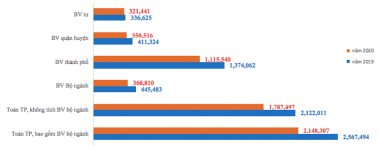 Số lượt điều trị nội trú tại các bệnh viện thường xuyên quá tải của Thành phố đều giảm trong năm 2020