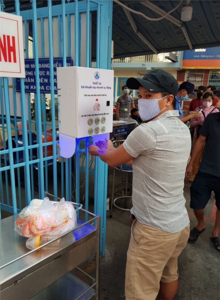 Với máy sát khuẩn tay tự động do bệnh viện tự chế tạo đã chuyển đổi công việc của đội bảo vệ bệnh viện trực gác ở cổng, thay vì phải xịt dung dịch thuốc sát khuẩn cho từng người bệnh chuyển sang hoạt động giám sát người bệnh tuân thủ rửa tay. Ngoài ra, chắc chắn rằng với cài đặt tự động số lượng dung dịch phun ra mỗi lần cho từng người bệnh sẽ tiết kiệm đáng kể dung dịch sát khuẩn. Bộ phận cảm biến của máy sát khuẩn tay tự động sẽ nhận diện khi đưa bàn tay dưới vòi máy, và tự động phun ra một lượng nước rửa tay dưới dạng phun sương theo thời gian đã được cài đặt trước đó, vừa đủ dung dịch sát khuẩn cho một lần rửa tay.