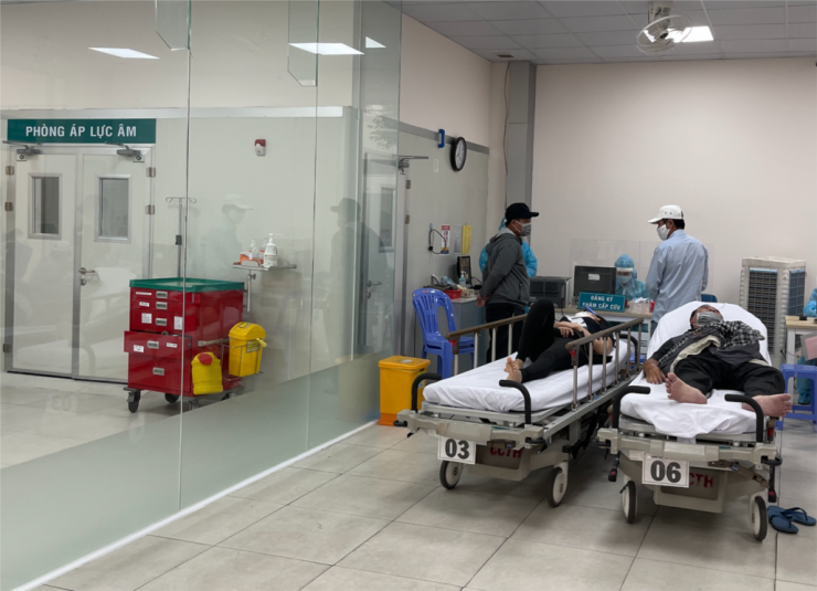 Sau hỏi bệnh sử và khám sàng lọc, bệnh nhân sẽ được chuyển sang khoa Cấp cứu (đối diện), hoặc đưa vào khu vực cách ly nếu tình trạng bệnh nhân nặng và nghi ngờ nhiễm COVID-19, hoặc đưa vào buồng cách ly áp lực âm nếu xác định nhiễm COVID-19.