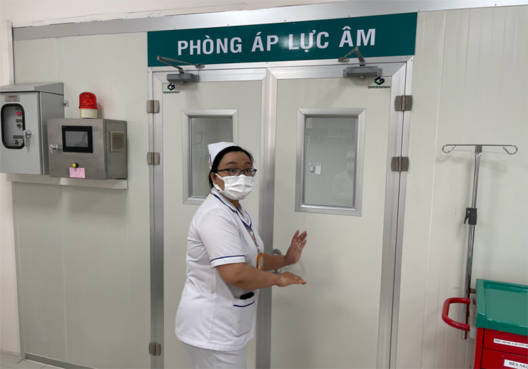 Đơn vị Cấp cứu sàng lọc được bố trí một buồng cách ly áp lực âm dành cho những trường hợp có kết quả Sars-CoV-2 (+)