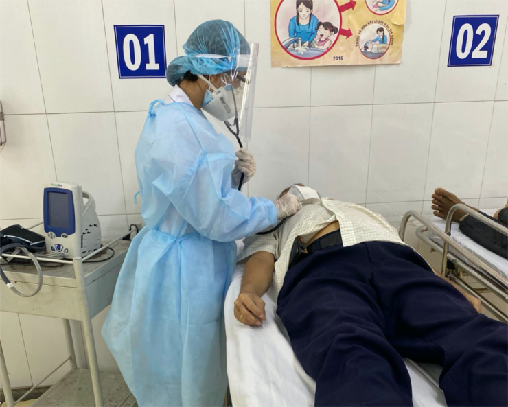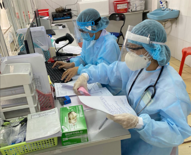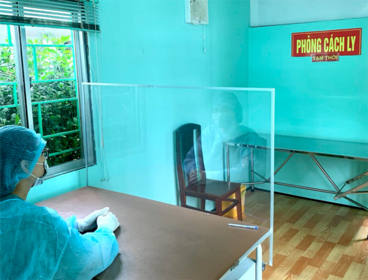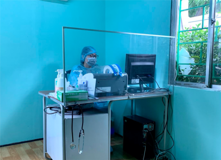 Tấm chắn trong suốt giữa nhân viên y tế và người bệnh tại phòng khám sàng lọc của BV Trưng Vươn