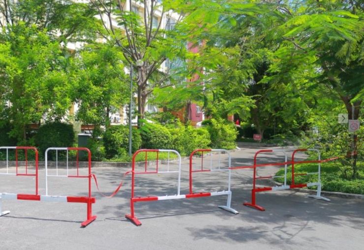 Hàng rào chắn tách biệt 2 nửa bệnh viện, kể cả tách biệt 2 nhóm nhân viên cho 2 chức năng