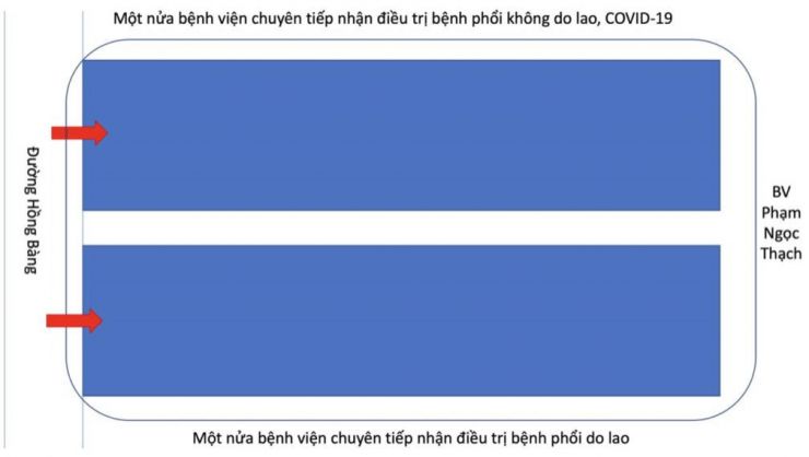 Theo đó, một nửa bệnh viện (tính theo chiều dọc) đã được tách biệt hẵn với một nửa còn lại, với cổng vào riêng, những khối nhà riêng (đã được bố trí những buồng áp lực âm, giường hồi sức, các buồng bệnh thông thoáng không dùng điều hoà trung tâm,…) và cả khu vực cận lâm sàng riêng biệt, trong đó có xét nghiệm RT-PCR chẩn đoán COVID-19. Quy mô giường bệnh của một nửa bệnh viện chuyên phục vụ cho bệnh nhân COVID-19 tại BV Phạm Ngọc Thạch hiện nay là 550 giường, với 66 giường hồi sức.