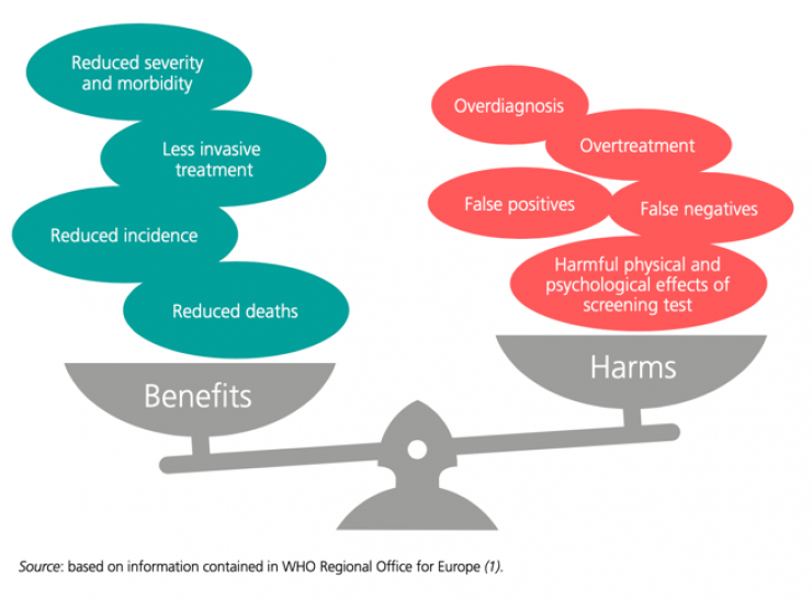 Chương trình tầm soát phải dựa trên các bằng chứng mạnh cho thấy hiệu quả trong việc giảm tỉ lệ tử vong và biến chứng. Chương trình tầm soát cũng nên cho thấy lợi ích mang lại vượt trội các nguy cơ tâm sinh lý do tầm soát.