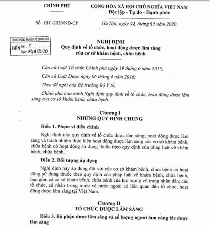 Đây là một trong những nội dung của Nghị định 131/2020/NĐ-CP quy định về tổ chức, hoạt động dược lâm sàng của cơ sở khám bệnh, chữa bệnh mà Chính phủ vừa ban hành.