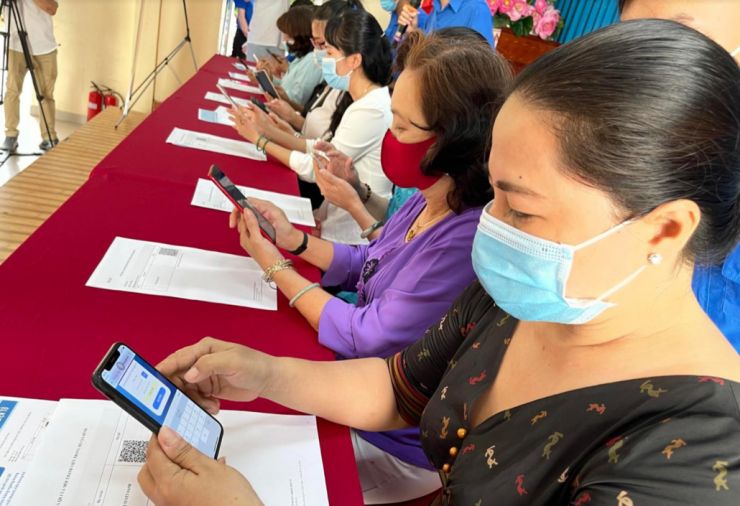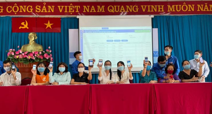 Những người dân đầu tiên cư ngụ tại phường 27, quận Bình Thạnh khai báo xong dữ liệu sức khoẻ vào Hồ sơ sức khoẻ điện tử của mình (ngày 28/04/2021)