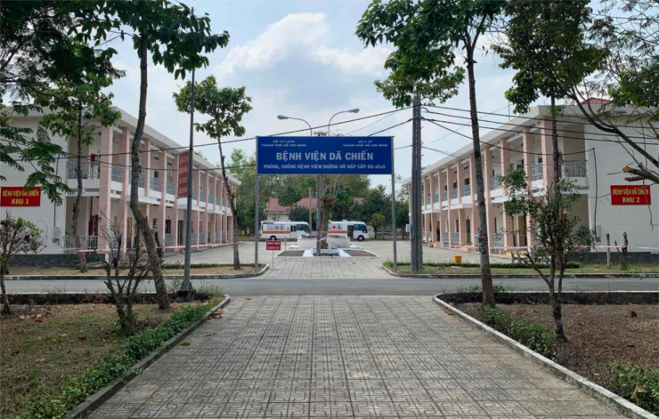 Môi trường cây xanh, thông thoáng của Bệnh viện dã chiến, mỗi khối nhà đều có khu vực vệ sinh riêng, nước thải được đấu nối vào hệ thống xử lý nước thải y tế đúng chuẩn theo quy định