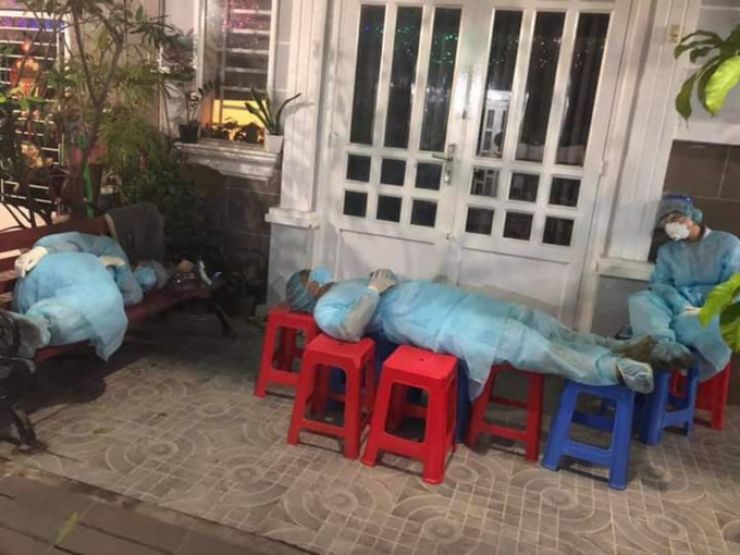Những giấc ngủ tạm bợ, ngắn ngủi ngoài trời của nhân viên lấy mẫu xét nghiệm thuộc Trung tâm y tế quận Bình Thạnh. Ảnh: Nhân vật cung cấp.