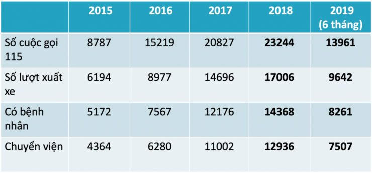 Trên địa bàn TP.HCM, số trạm cấp cứu vệ tinh tăng dần theo mỗi năm, cho đến nay đã có 31 bệnh viện công lập và tư nhân tự nguyện tham gia làm trạm vệ tinh của Trung tâm Cấp cứu 115. Tương ứng, số lượt gọi 115 của người dân cứ tăng dần mỗi năm và đã tăng gấp 3 lần vào thời điểm hiện nay (ước tính trên 25.000 cuộc gọi trong năm 2019) nếu so sánh với năn 2015 (8.787 cuộc gọi) đã cho thấy người dân thành phố đã tin tưởng hơn với hoạt động cấp cứu của Ngành Y tế thành phố.