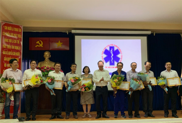 GS Nguyễn Tấn Bỉnh – GĐ SYT TP.HCM tặng Giấy khen cho các bệnh viện tham gia tích cực và hiệu quả làm trạm cấp cứu vệ tinh