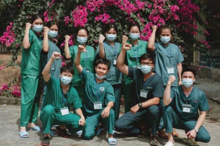 10 bác sĩ và điều dưỡng của Bệnh viện Q.4 đang đảm trách 3 dãy nhà tại khu cách ly ký túc xá ĐH Quốc gia TP.HCM, đều là những y bác sĩ còn rất trẻ, chưa ai lập gia đình. Họ tự nguyện đăng ký xin đi thay cho những bác sĩ lớn tuổi, vì nghĩ mình trẻ, sức khỏe dẻo dai, sức đề kháng cũng tốt hơn để tham gia
