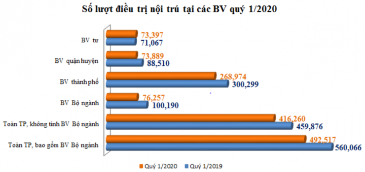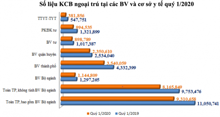 - Tổng số lượt khám trong quý 1/2020 giảm 15,7% so với cùng kỳ.