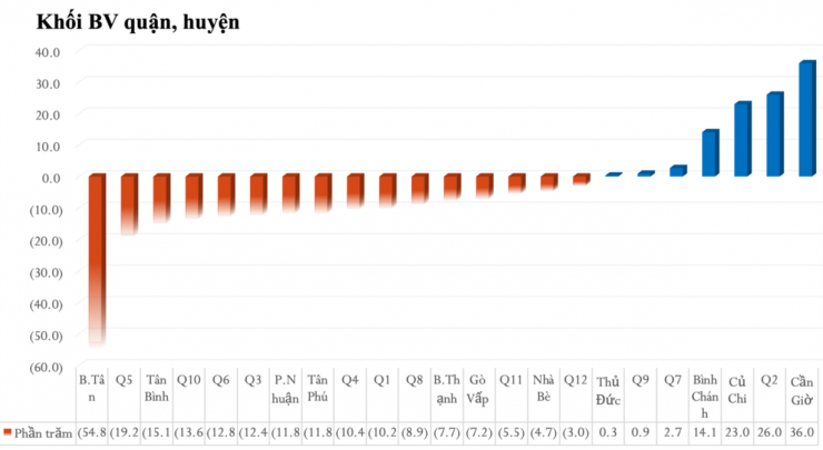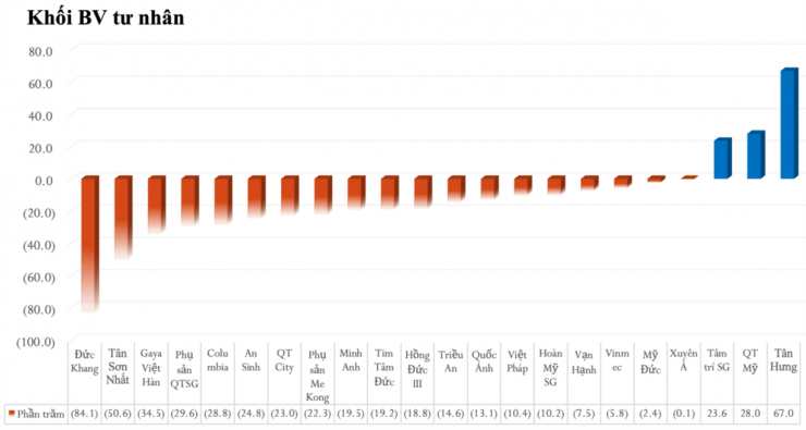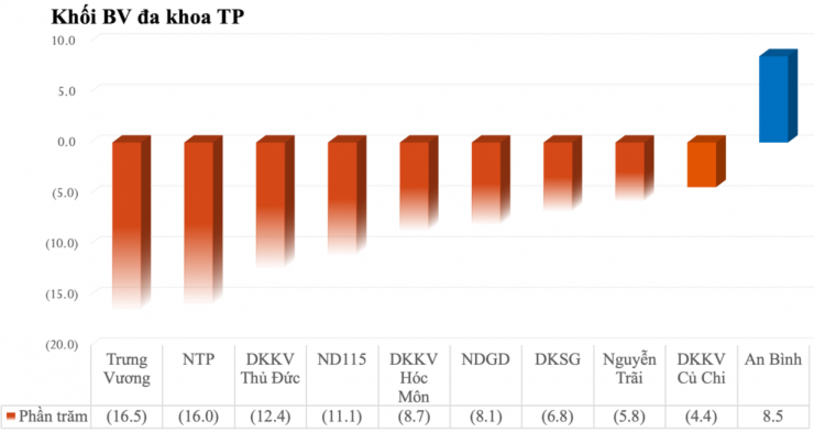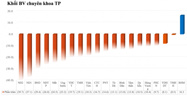 - Cụ thể: BV bộ ngành giảm 11,8%, BV thành phố giảm 18,3%, BV quận huyện giảm 7,3%, BV tư giảm 11,6%, PKĐK tư giảm 24,7%, TTYT, TYT giảm 30%.