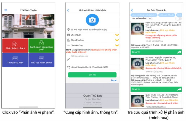 Mới đây, ngày 03/03/2020, Giám đốc Sở Y tế TPHCM đã chính thức ban hành “Quy trình phản ứng nhanhtrong tiếp nhận thông tin phản ánh và xử lý các hành vi vi phạm pháp luật liên quan đến hành nghề trong lĩnh vực y tế”, công cụ sử dụng chính của quy trình này chính là ứng dụng “Y tế trực tuyến”.