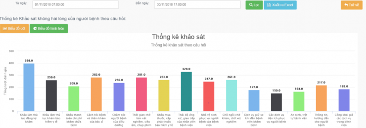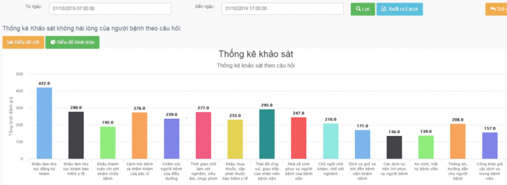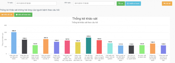 Phần mềm tổng hợp kết quả của hệ thống ki-ốt khảo sát không hài lòng của người bệnh tại khoa khám bệnh của các bệnh viện công lập thuộc Sở Y tế TP.HCM cho biết trong tháng 11/2019 có tổng cộng 2.552 lượt ý kiến phản ánh không hài lòng, giảm 26,7% so với tháng 10/2019 (3.480 lượt) và giảm 30% so với cùng kỳ (tháng 11/2018: 3.653 lượt).