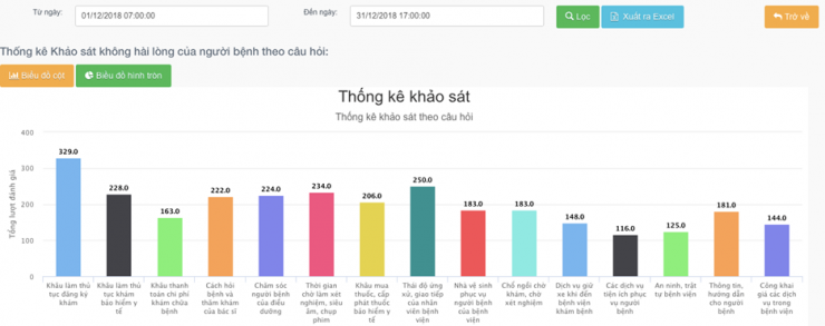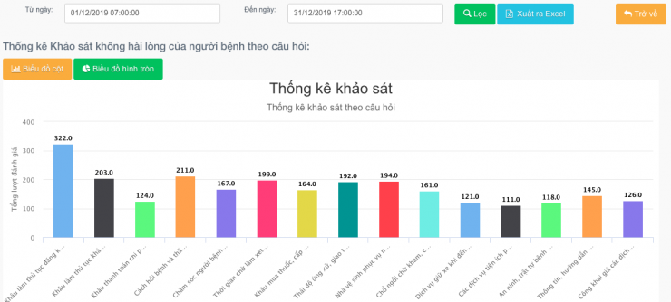 Phần mềm tổng hợp kết quả của hệ thống ki-ốt khảo sát không hài lòng của người bệnh tại khoa khám bệnh của các bệnh viện công lập thuộc Sở Y tế TP.HCM cho biết trong tháng 12/2019 có tổng cộng 2.558 lượt ý kiến phản ánh không hài lòng, xấp xỉ so với tháng 11/2019 (2.552 lượt) và giảm 13% so với cùng kỳ (tháng 12/2018: 2.936 lượt).