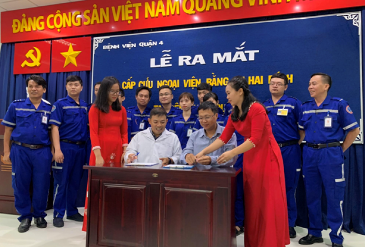 Như vậy, cho đến nay, đã có 4 trạm cấp cứu vệ tinh của mạng lưới cấp cứu của thành phố có thêm phương tiện cấp cứu ngoài bệnh viện bằng xe cấp cứu 2 bánh, bao gồm: BV đa khoa Sài Gòn, BV quận 2, BV quận Thủ Đức, BV quận 4.