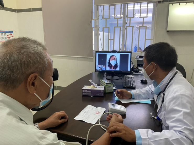 Bác sĩ của Trạm y tế phường Phú Mỹ, quận 7 sử dụng “apps hội chẩn” xin ý kiến chuyên môn với bác sĩ chuyên khoa của Bệnh viện Nguyễn Trãi