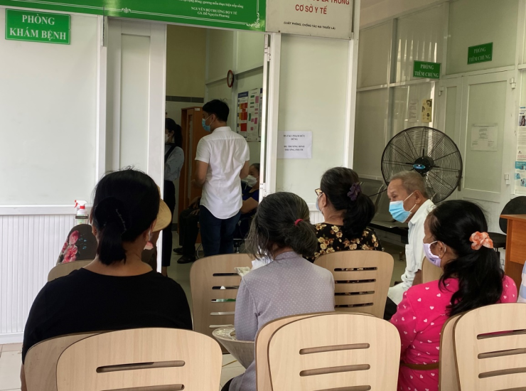 Người dân trên địa bàn chờ khám chữa bệnh tại Trạm y tế phường Phú Mỹ, quận 7