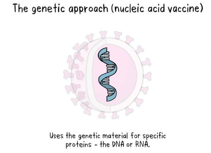 Vắc xin axit nucleic cung cấp một tập hợp các hướng dẫn cụ thể cho các tế bào của cơ thể con người, dưới dạng DNA hoặc mRNA, để chúng tạo ra protein cụ thể (tương tự protein của vi rút gây bệnh) giúp hệ thống miễn dịch của cơ thể nhận ra và đáp ứng.