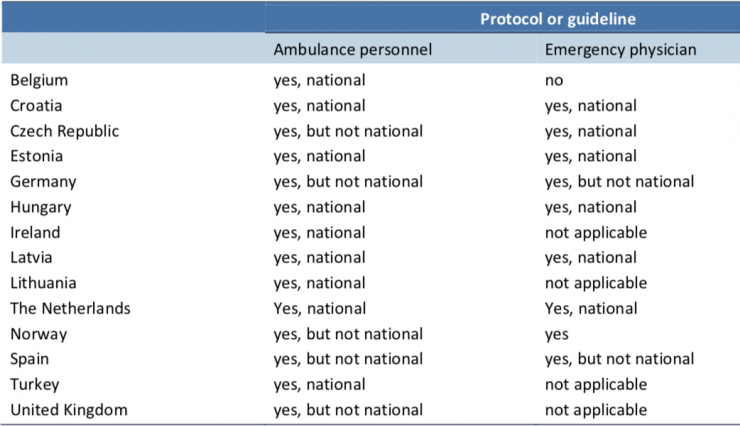 Nhân viên cấp cứu ngoài bệnh viện và bác sĩ tại các khoa Cấp cứu sử dụng hướng dẫn sàng lọc bệnh tại các nước Châu Âu (Công trình nghiên cứu “Ambulance care in Europe Organization and practices of ambulance services in 14 European countries” - Nanne Bos, Maarten Krol, Charlotte Veenvliet, Anne Marie Plass)