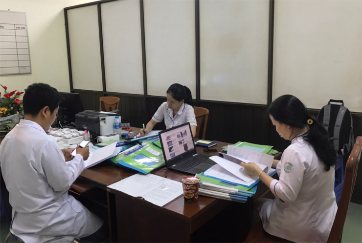 Cả kíp trực bác sĩ, điều dưỡng hoàn tất hồ sơ trong đêm trực, chuẩn bị báo cáo trong giao ban sáng với lãnh đạo bệnh viện