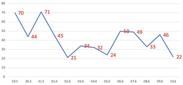 - BV Điều trị COVID-19 Cần Giờ tiếp nhận người bệnh từ các Khu cách ly: Quận Tân Bình (02), Quận Gò Vấp (02), Quận Bình Thạnh (04), Quận 12 (01), Huyện Bình Chánh (01), ĐH Xã Hội (02), BV Trưng Vương (02), và 04 ca F1 có kết quả xét nghiệm dương tính.