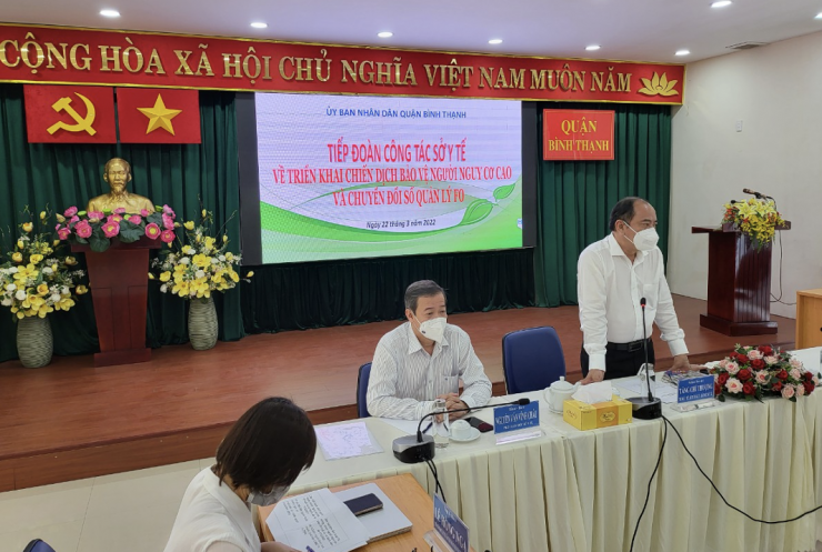 Ngày 22.3.2022, PGS.TS.BS Tăng Chí Thượng, Giám đốc Sở Y tế thành phố Hồ Chí Minh, dẫn đầu đoàn công tác của Sở Y tế, cùng Lãnh đạo Sở Thông tin Truyền thông đã đến làm việc với Lãnh đạo UBND quận Bình Thạnh, Phòng Y tế và TTYT quận Bình Thạnh.