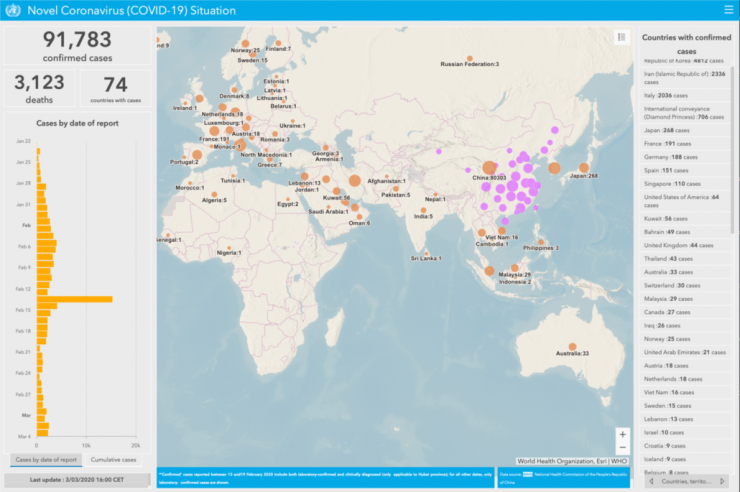 “Situation Dashboard” về tình hình dịch bệnh COVID-19 của TCYTTG (16 giờ, ngày 03/03/2020)