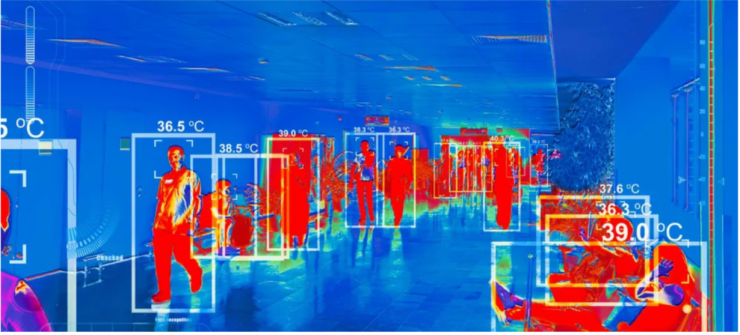 Triệu chứng phổ biến của Covid-19 là sốt cao, nhiều sân bay và trụ sở làm việc sử dụng máy ảnh nhiệt sử dụng công nghệ hồng ngoại làm công cụ để phát hiện ai bị sốt và có thể bị nhiễm vi-rút hay không.