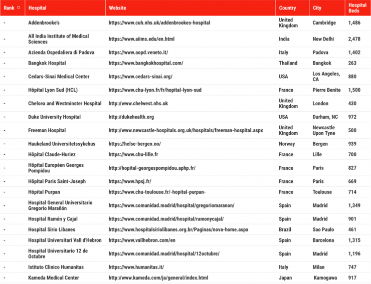 Newsweek hợp tác với công ty nghiên cứu dữ liệu toàn cầu Statista xếp hạng các bệnh viện hàng đầu tại 21 quốc gia phát triển trên thế giới