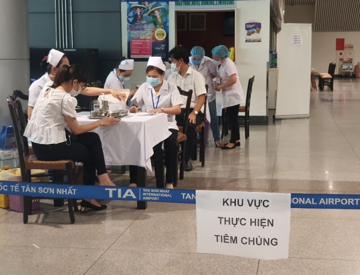 Ảnh: Thành phố đã thực hiện tiêm chủng vắc-xin phòng COVID-19 cho nhân viên làm việc tại sân bay Tân Sơn Nhất.