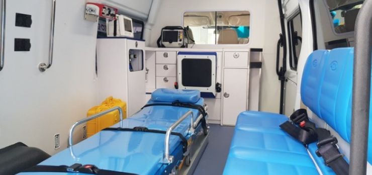 Bên trong xe cấp cứu được trang bị đầy đủ trang thiết bị y tế cần thiết.