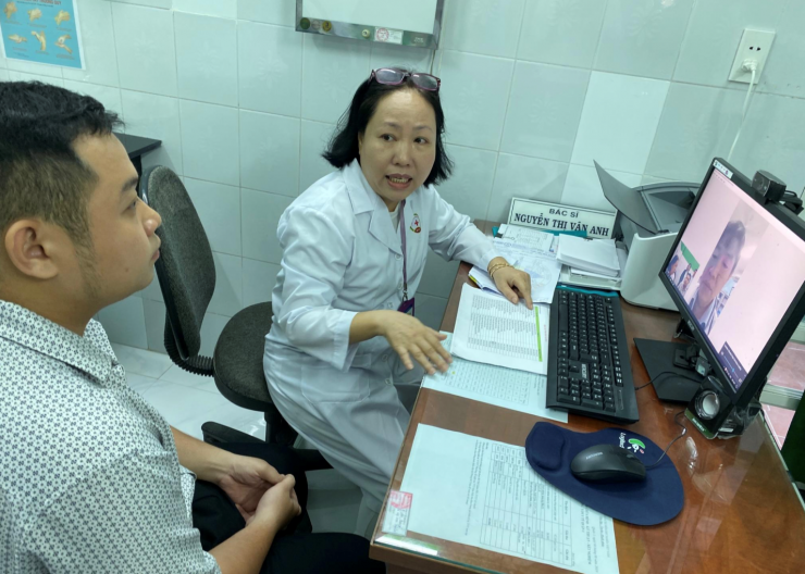 Bác sĩ Trạm Y tế phường Cô Giang cùng người bệnh trao đổi thông tin và được Bác sĩ chuyên khoa Nội thần kinh của BV Nhân dân Gia Định tư vấn từ xa (sáng ngày 23/10/2019).