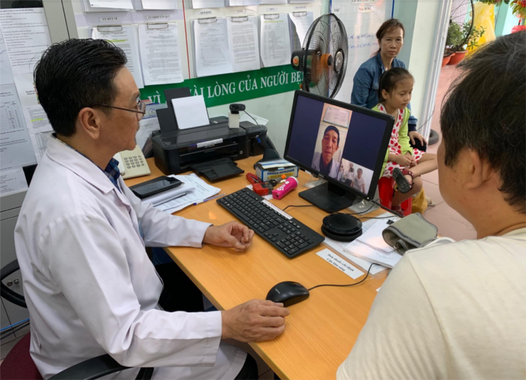 Bác sĩ của Trạm Y tế phường Tân Quý trao đổi và xin ý kiến chuyên môn của bác sĩ chuyên khoa của BV Trưng Vương (18/04/2019)