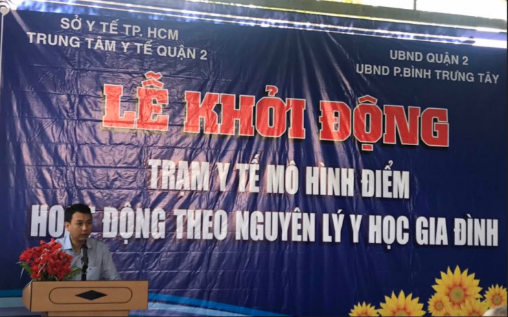 Ông Nguyễn Bạch Hoàng Phụng, Phó Chủ UBND quận 2 phát biểu trong buổi lễ ra mắt Trạm Y tế phường Bình Trưng Tây đổi mới hoạt động theo nguyên lý Y học gia đình