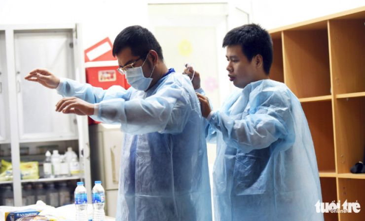 "Đồ bảo hộ từ lúc mặc cho đến khi cởi ra tuyệt đối không được đụng vào. Có nóng quá, mồ hôi có chảy cay xè nhòe cả mắt cũng phải ráng chịu cho đến khi hoàn thành nhiệm vụ mới thôi" - y sĩ Trí nói.