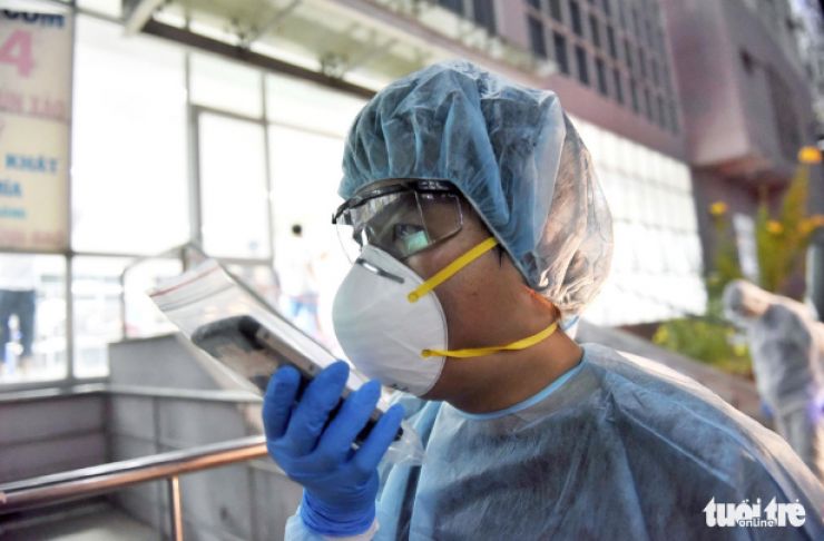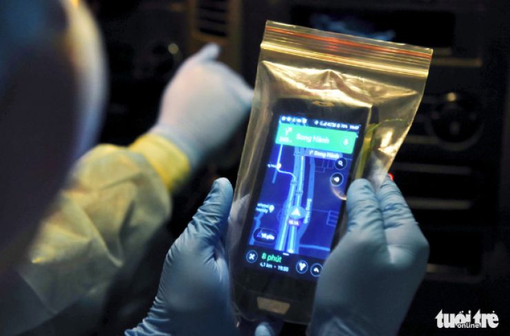 Khu cách ly nằm xa trung tâm thành phố, các nhân viên y tế phải sử dụng ứng dụng chỉ đường, chiếc điện thoại cũng được bọc kỹ lưỡng để đảm bảo an toàn - Ảnh: DUYÊN PHAN