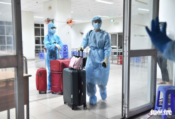 Nhân viên y tế giúp chuyển đồ của các ca nghi nhiễm lên xe - Ảnh: DUYÊN PHAN