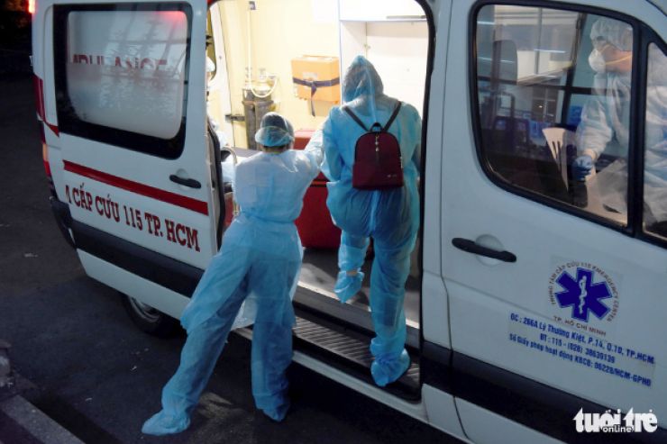 Bác sĩ Nguyễn Duy Long - giám đốc Trung tâm cấp cứu 115 - cho biết đến nay đơn vị đã xuất xe vận chuyển được 149 ca nhiễm, nghi nhiễm COVID-19 từ sân bay Tân Sơn Nhất về các nơi như Bệnh viện Bệnh nhiệt đới TP, một số khu cách ly ở các bệnh viện quận, huyện và các nơi cách ly tập trung ở Quân đoàn 4, Cần Giờ, Củ Chi.