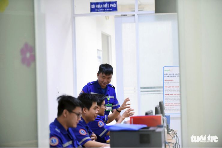 Những thông tin cực ngắn gọn này lập tức được chị Trần Thị Thanh Trang - nhân viên trực tổng đài, lần lượt điều phối đến 3 trạm cấp cứu vệ tinh gần nhất gồm Bệnh viện quậnThủ Đức, Bệnh viện quận 9, Bệnh viện quận 2 nhưng tất cả đều đang trong tình trạng "vận chuyển người đi cách ly".