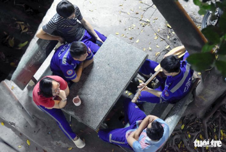 Sau những phút gồng mình chạy đua với công việc, các nhân viên y tế tại Trung tâm cấp cứu 115 TP.HCM mới có cho mình vài phút giây thư giãn trong đêm - Ảnh: DUYÊN PHAN