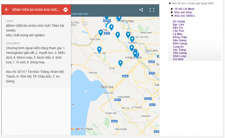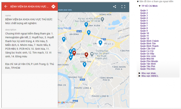 “Bản đồ ngoại kiểm” tích hợp trên trang thông tin điện tử của Trung tâm Kiểm chuẩn Xét nghiệm TP. HCM