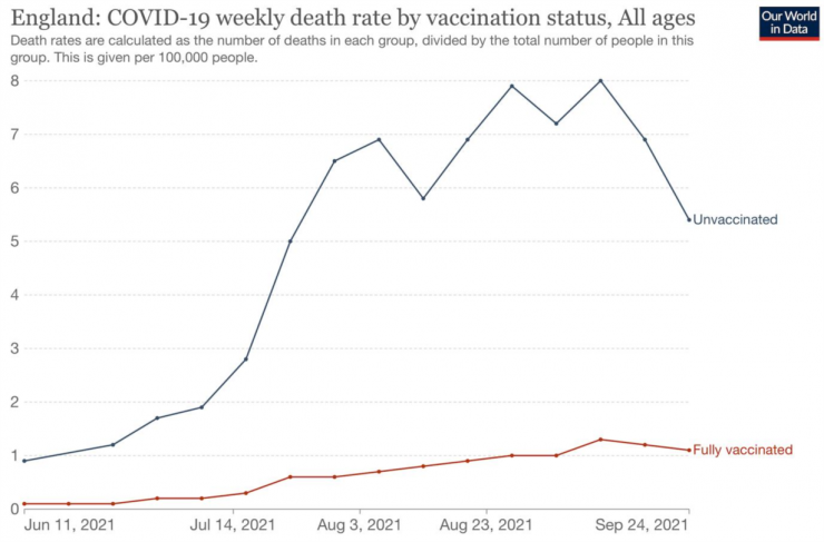 Tại Anh, tỷ lệ người dân tiêm đủ vắc xin phòng COVID-19 là 68,5%, hầu hết tiêm vắc xin do AstraZeneca và Pfizer sản xuất. Dữ liệu tử vong theo tình trạng tiêm chủng do Văn phòng Thống kê Quốc gia công bố.