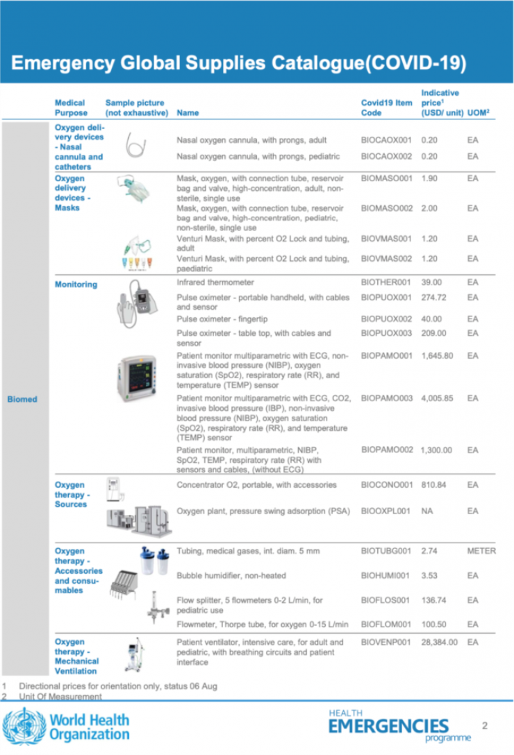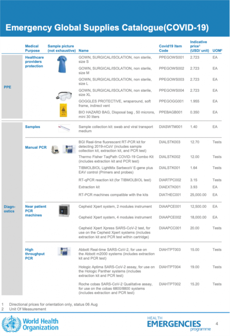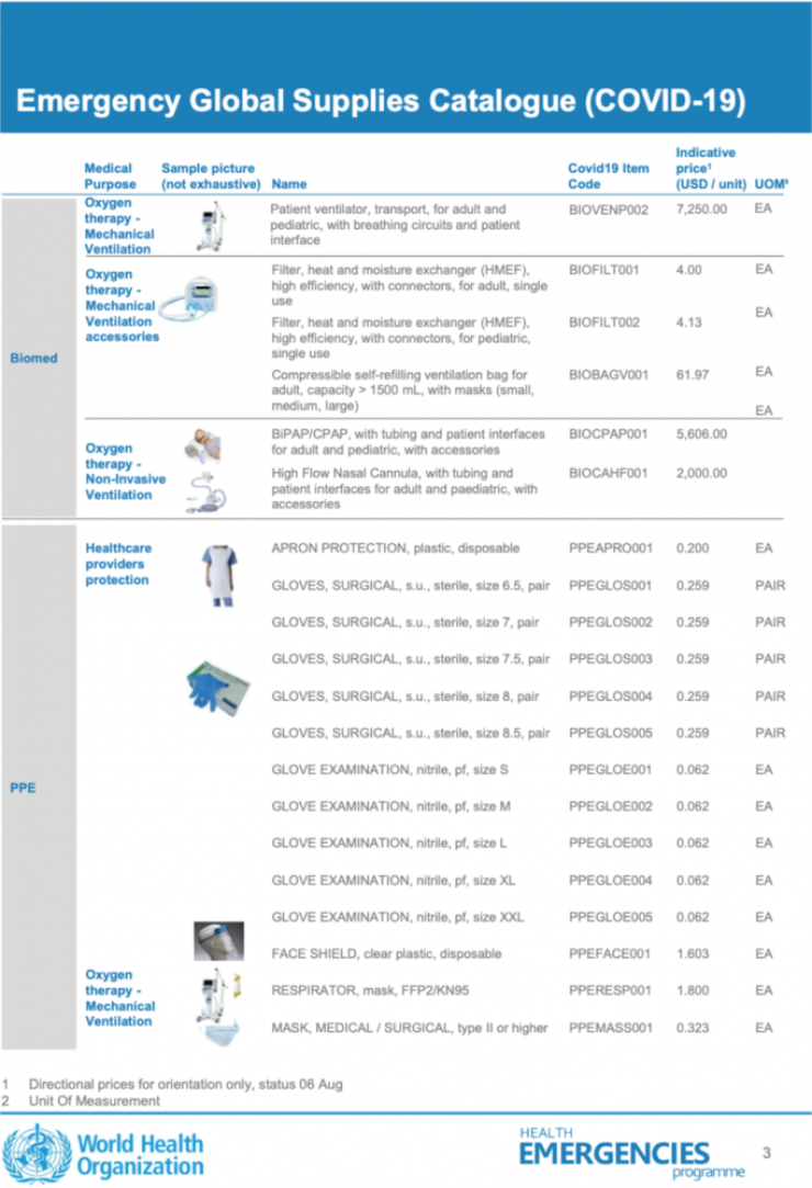 (Tài liệu tham khảo: “Emergency Global Supply Chain System (COVID-19), Catalogue as of 10.08.2020 – Health Emergencies Programme – World Health Organization)